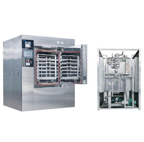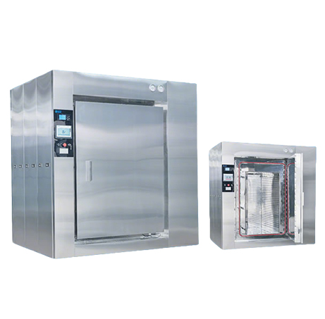 JR.FG系列通风式灭菌柜利用洁净蒸汽和空气混压灭菌的工艺模式,可以很好地控制设备和产品的压力平衡和反压保 护,在需要保持和保护物品外形和密封状态的灭菌领域获得了广泛的应用和良好的效果。强制对流风扇和导流风板结构使 得腔体内部非饱和蒸汽均匀混合,确保灭菌温度均匀性,设备内部设有冷却盘管,产品的冷却和干燥是通过将冷却水引入 冷凝盘管将灭菌室内的混合气体冷凝。冷空气流过产品将产品冷却,同时产品表面的水渍蒸发,最后实现冷却和干燥的目 的。针对某些干燥要求高的品种,更可以增加热风干燥功能。